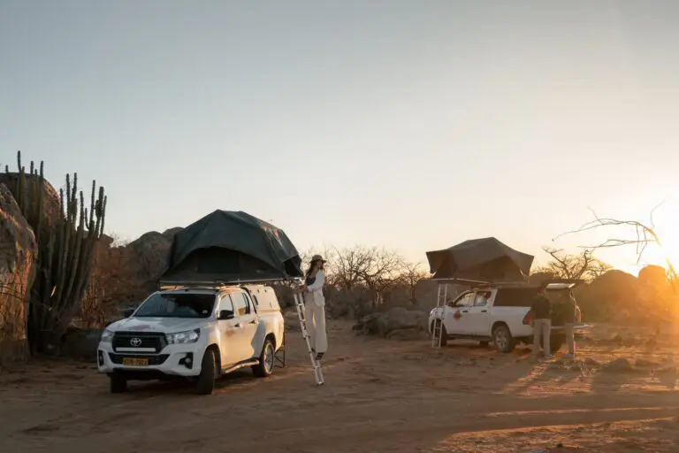 Après votre première nuit à Windhoek, une navette viendra vous chercher à 10h à votre hôtel pour vous conduire à l’endroit où vous récupérerez votre 4×4 avec tente de toit. Vous assisterez d’abord à un briefing et recevrez toutes les explications sur le fonctionnement du véhicule et du matériel, puis vous serez prêt à commencer votre aventure.