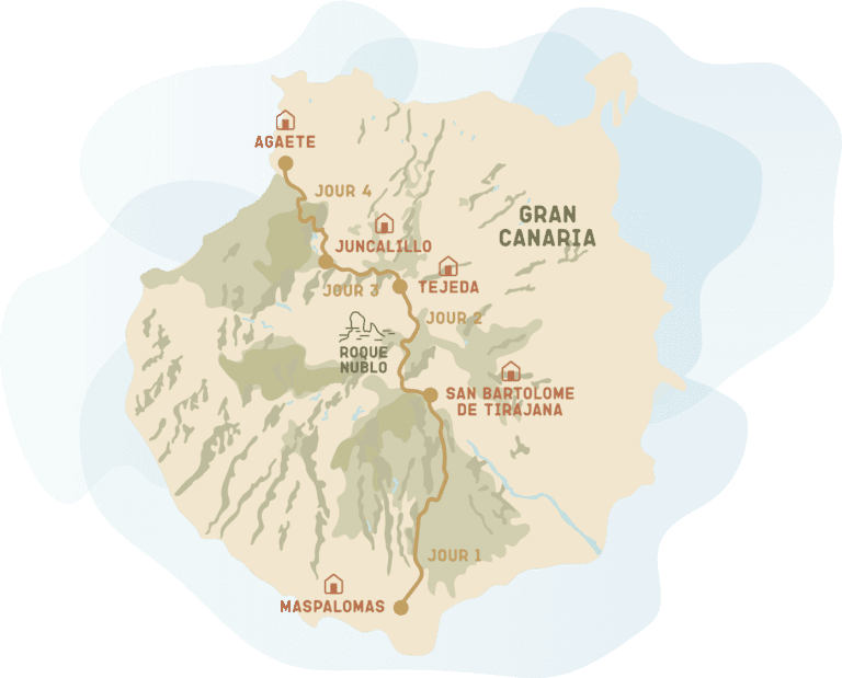 Imaginez : vous partez des dunes de sable doré de Maspalomas et, 4 jours plus tard, vous arrivez face à l’Atlantique à Agaete. Entre les deux ? Des volcans, des villages cachés, le Roque Nublo… et une belle bande d’aventurier·es avec qui partager ça.