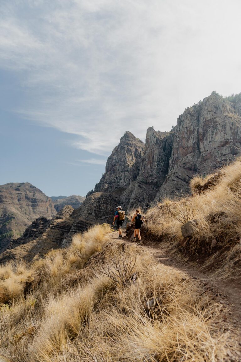 À Gran Canaria, le soleil est roi et les températures peuvent, surtout dans les ravins plus bas, grimper rapidement. La chaleur dans ces vallées abritées est parfois trompeuse, car il y a peu de vent. Il est donc important d’adapter votre rythme et de boire suffisamment d’eau pendant l’effort.