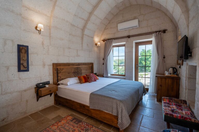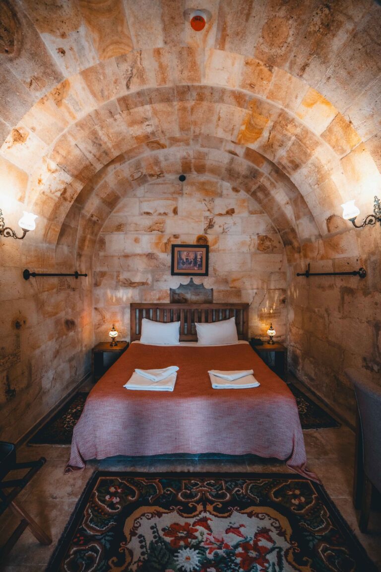 Tout au long de votre séjour, vous êtes accueilli dans des hébergements troglodytiques pleins de charme, véritables refuges creusés dans la roche. Chaque matin, savourez un petit-déjeuner local authentique, avant de repartir à la découverte de paysages grandioses. Ces logements uniques vous plongent au cœur de la culture cappadocienne : hospitalité chaleureuse, cuisine savoureuse et traditions séculaires.